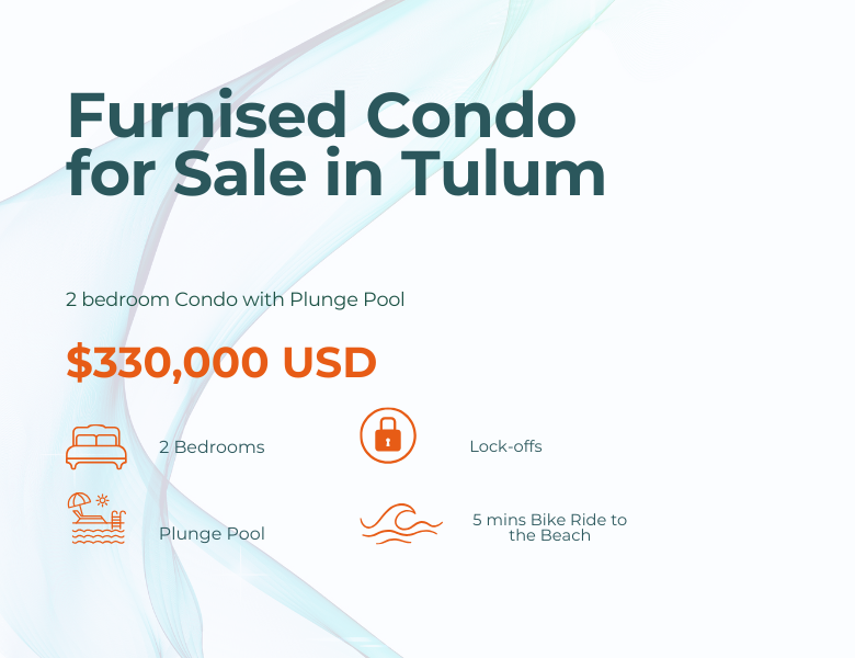 Step into the dream at Villa Deja vu, a fully furnished and artfully curated 2-bedroom condo that captures the soul of Tulum with every detail. Priced at $389,000 USD, this stunning retreat offers the perfect combination of comfort, convenience, and income potential all just a 5-minute bike ride from the beach.